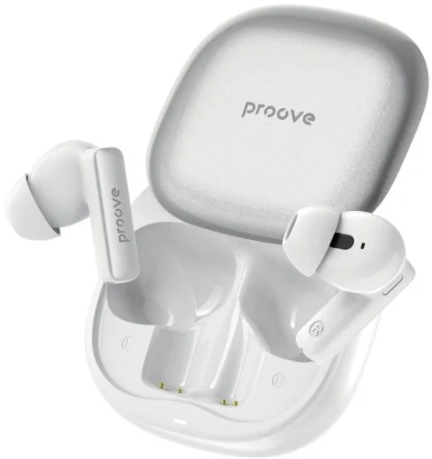 Щодо автономності: навушники працюють до 5 годин при прослуховуванні музики на 50% гучності, а зарядний кейс із акумулятором 320 мАг подовжує загальний час роботи приблизно до 25 годин. Заряджаються навушники через сучасний порт Type-C усього за годину. Захист IPX4 дозволяє не боятися дощу чи поту під час тренувань. Додатково модель підтримує фірмовий застосунок Proove, через який можна налаштувати еквалайзер, перепризначити сенсорні жести, увімкнути Game Mode або режим прозорості — під будь-який сценарій використання.