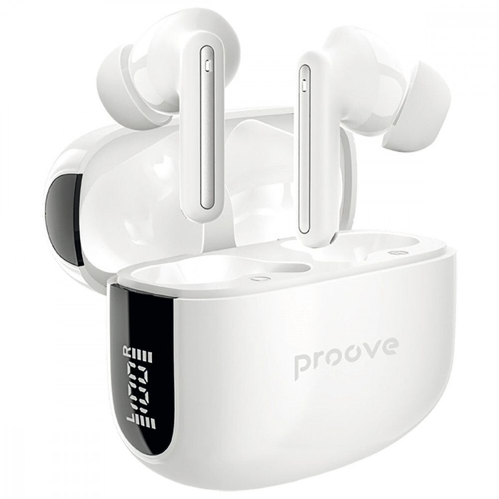 Навушники забезпечують до 5,5 годин безперервного прослуховування музики від одного заряду, а у режимі розмов — до 3,5 годин. Зарядний кейс із акумулятором 300 мАг дозволяє підзаряджати навушники кілька разів у дорозі, а повне відновлення заряду через роз'єм Type-C займає приблизно 1,5 години. Захист IPX4 робить їх стійкими до бризок дощу та поту — навушники однаково зручні для щоденних прогулянок, поїздок у транспорті та активних тренувань. Усі функції та режими доступні для керування через фірмовий застосунок Proove, а підтримувані Bluetooth-профілі A2DP, AVRCP, HFP і SPP роблять пристрій універсальним для музики, дзвінків і мультимедіа.