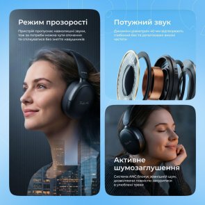 Динаміки діаметром 40 мм відтворюють весь діапазон частот від 20 Гц до 20 кГц — від глибоких басів до чітких високих. Імпеданс 32 Ом забезпечує сумісність зі смартфонами та іншими портативними пристроями без потреби у підсилювачі. Акумулятор ємністю 800 мАг витримує до 90 годин музики або до 80 годин розмов на повній гучності, а повне заряджання займає лише 2,5 години. Підтримуються аудіокодеки AAC і SBC для якісної бездротової передачі звуку.