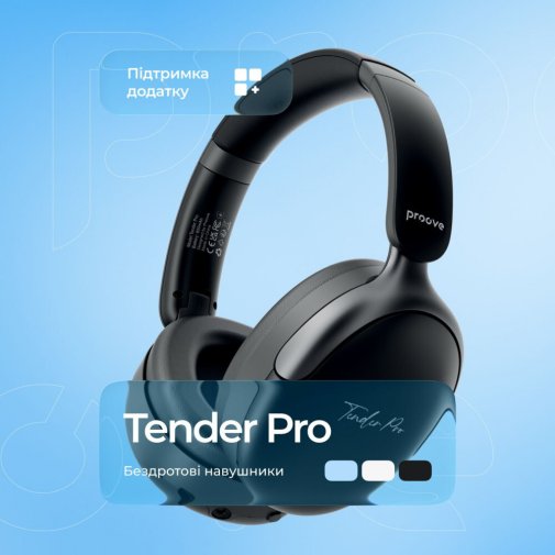 Proove Tender Pro — це повнорозмірні бездротові навушники з Bluetooth 6.0, розраховані на тих, хто цінує якісний звук і тривалу автономну роботу. Модель підійде як для щоденного використання вдома чи в дорозі, так і для геймерів і любителів музики, яким важливе детальне, збалансоване звучання. Навушники сумісні з фірмовим застосунком Proove, що виводить налаштування на новий рівень.