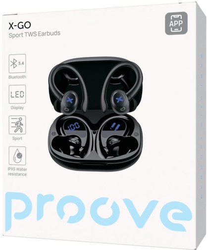 Proove X-Go — спортивні TWS навушники з захистом IPX5, Bluetooth 5.4 та автономністю до 7 годин. Модель орієнтована на активних користувачів, яким важливі надійне з'єднання, комфортна посадка та стійкість до поту й вологи під час тренувань.