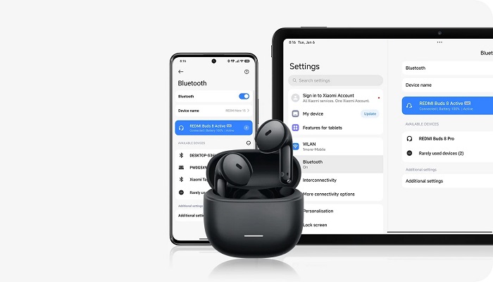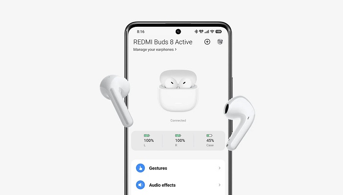 Redmi Buds 8 Active — це бездротові TWS-навушники-вкладиші, які поєднують сучасні технології зі зручністю повсякденного використання. Вони підключаються за допомогою Bluetooth 5.4, що забезпечує стабільний зв'язок у радіусі до 10 метрів, і важать лише 3,8 г кожен — практично не відчуваєш їх у вухах.