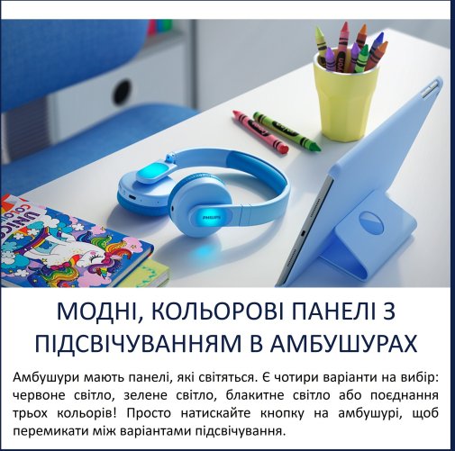 Philips Kids TAK4206 — адаптовані для дітей накладні навушники з вбудованим мікрофоном.