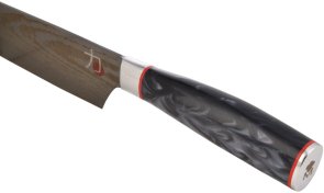 Ніж MasterPro Tetsu виготовлений із нержавіючої сталі, лезо стійке до корозії, легко заточується, при цьому надовго зберігаючи ідеальну гостроту. Гладка ріжуча кромка. Ергономічна ручка зручної форми.