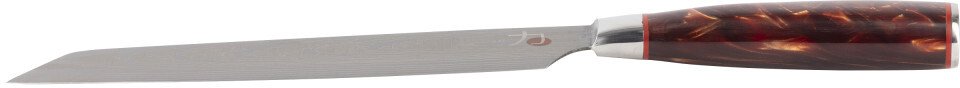 Ніж MasterPro Tetsu виготовлений із нержавіючої сталі, лезо стійке до корозії, легко заточується, при цьому надовго зберігаючи ідеальну гостроту. Гладка ріжуча кромка. Ергономічна ручка зручної форми.