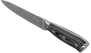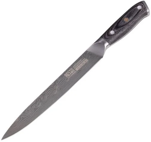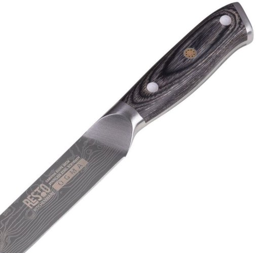 - Лезо з лазерним гравіюванням, стилізоване під дамаську сталь