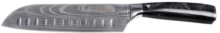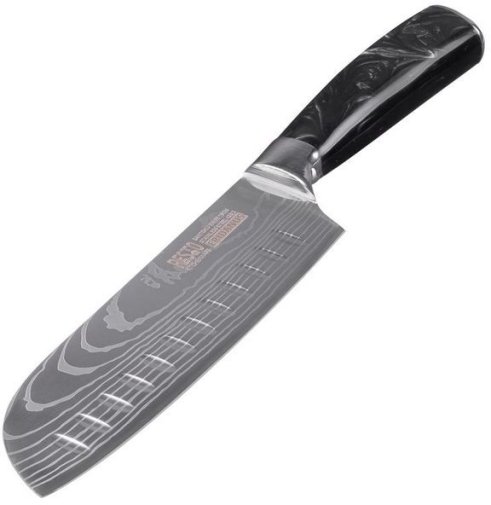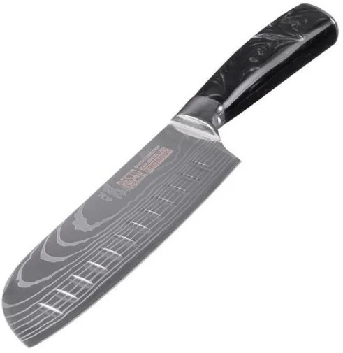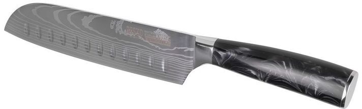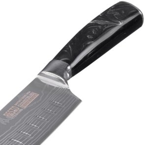 - Лезо з лазерним гравіюванням, стилізоване під дамаську сталь.