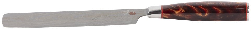 Ніж MasterPro Tetsu виготовлений із нержавіючої сталі, лезо стійке до корозії, легко заточується, при цьому надовго зберігаючи ідеальну гостроту. Гладка ріжуча кромка. Ергономічна ручка зручної форми. Ніж не тільки прикрасить вашу кухню, але й дуже практичний у використанні.