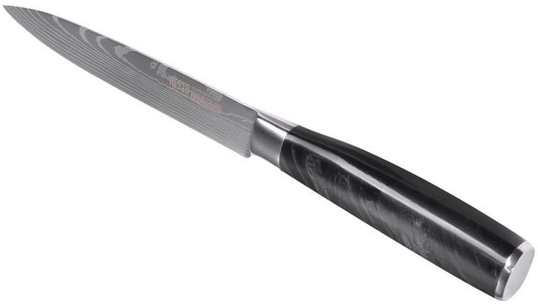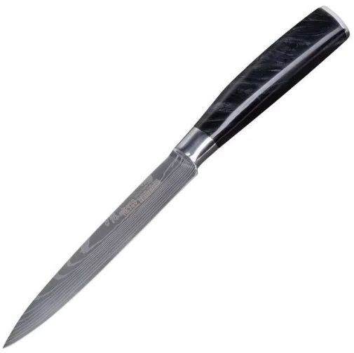 - Лезо з лазерним гравіюванням, стилізоване під дамаську сталь