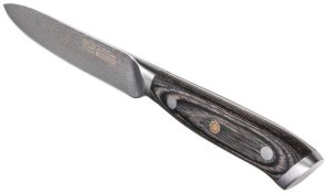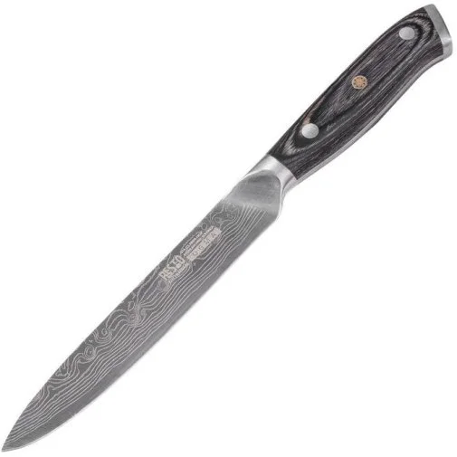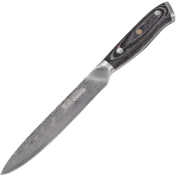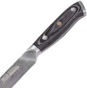 - Лезо з лазерним гравіюванням, стилізоване під дамаську сталь