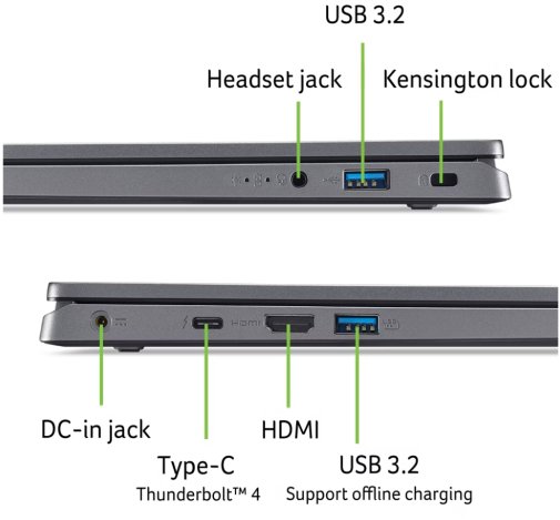 Під’єднуйте або заряджайте найновіші пристрої за допомогою широкого набору інтерфейсів. Ноутбук також підтримує сучасний стандарт Wi-Fi 802.11ax, а тому користувач зможе без проблем користуватися швидким з'єднанням з мережею, працюючи ефективно та без перебоїв.