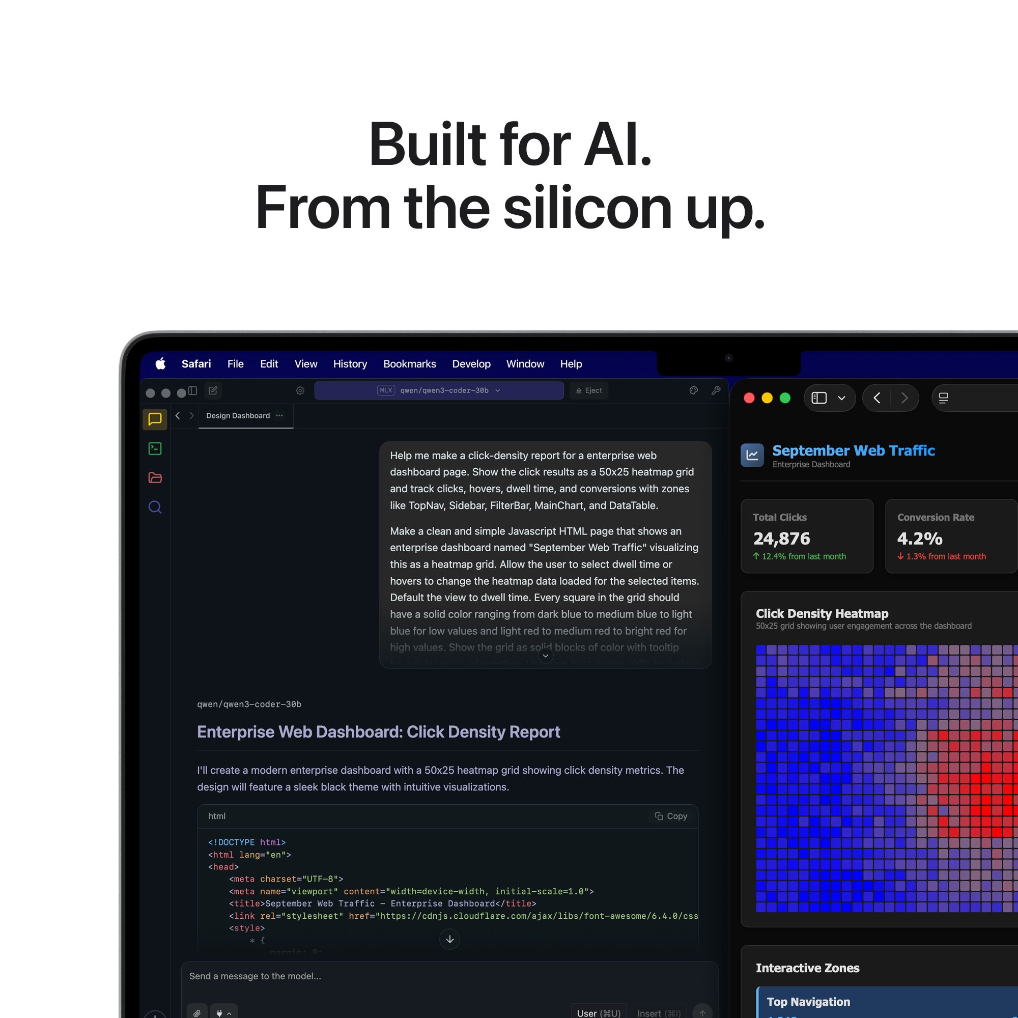 MacBook Pro — це повноцінна платформа для штучного інтелекту. Apple Intelligence допомагає писати тексти, редагувати фотографії, створювати автоматизації та обробляти аудіозаписи. При цьому всі обчислення відбуваються безпосередньо на пристрої, а революційна технологія Private Cloud Compute дозволяє виконувати складніші запити на серверах Apple без компромісу для приватності.