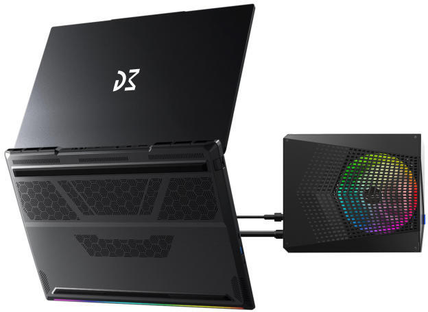 Продуктивність ноутбука базується на процесорі AMD Ryzen 9 9955HX3D на архітектурі Zen 5. Оперативна пам’ять DDR5 забезпечує швидку обробку даних. SSD-накопичувач гарантує блискавичний запуск системи та програм. Унікальна система рідинного охолодження Dream Waterfall ефективно знижує температуру, запобігаючи тротлінгу навіть під час інтенсивних навантажень. Компактний зовнішній блок охолодження із RGB-підсвіткою легко підключається через магнітні герметичні роз’єми.