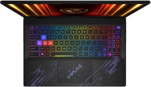 Система охолодження MSI Cooler Boost 5 із двома вентиляторами та п’ятьма тепловими трубками, що з’єднують CPU і GPU, забезпечує ефективне відведення тепла навіть під час інтенсивних навантажень. Ноутбук оснащений клавіатурою SteelSeries із RGB-підсвічуванням для кожної клавіші, що дозволяє налаштувати освітлення та макроси через SteelSeries GG.