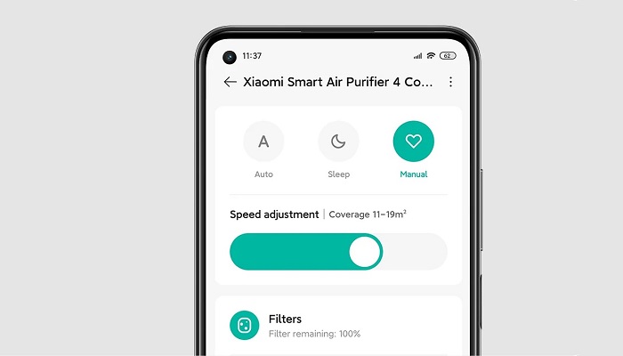 Для зручності користування Smart Air Purifier 4 Compact підтримує дистанційне керування через застосунок. Ви можете увімкнути очищувач заздалегідь, щоб повернутися додому до свіжого повітря, встановлювати таймер, вибирати оптимальні параметри очищення, регулювати площу покриття та швидкість роботи у ручному режимі.