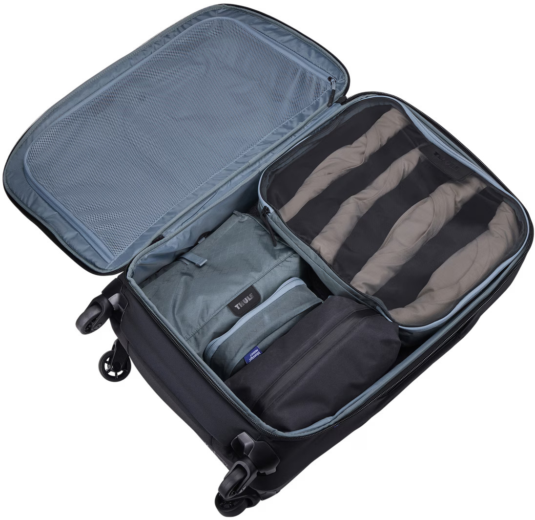 Органайзер виготовлений з екологічних матеріалів: 100% переробленого рипстоп-нейлону з рибальських сіток, без PFAS і з сертифікацією bluesign. Він легкий (всього 0,1 кг), але дуже міцний і стійкий до зносу. Розмір 31,5 × 9,5 × 40 см дозволяє компактно скласти кілька пар штанів, кілька светрів, об’ємний верхній одяг чи спортивне спорядження. Ідеально підходить для сімейних подорожей або тривалих відпусток, коли валіза заповнена по вінця.