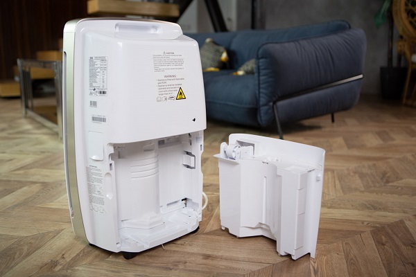 Інтелектуальна система захисту зупиняє роботу при заповненні 4-літрового резервуара, супроводжуючи це потрійним звуковим сигналом. Безперервний злив можливий через дренажний шланг. Фільтр миється водою; індикатор сповіщає про забруднення після 250 годин роботи.