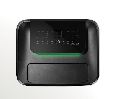 Сенсорна панель з інформативним дисплеєм та індикаторами вологості, режимів, таймера, Wi-Fi, іонізації, забруднення повітря й переповнення місткості. Є підсвітка, блокування від дітей і регулювання повороту дефлектора.