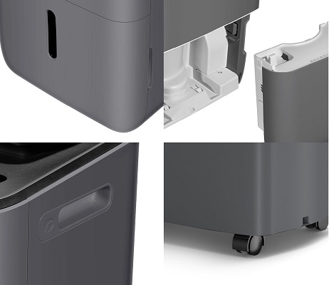 Продумана конструкція: віконце для контролю рівня води, зручні бокові ручки, великий бак на 5,5 л та мобільність завдяки колесам або стійким гумовим ніжкам.