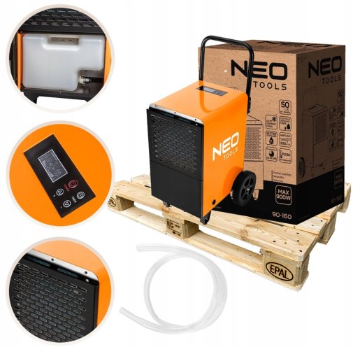 Neo Tools 90-160 — це потужний, витривалий та зручний у керуванні осушувач, який стане надійним інструментом для професійного використання там, де потрібен стабільний контроль вологості та безперервна робота.