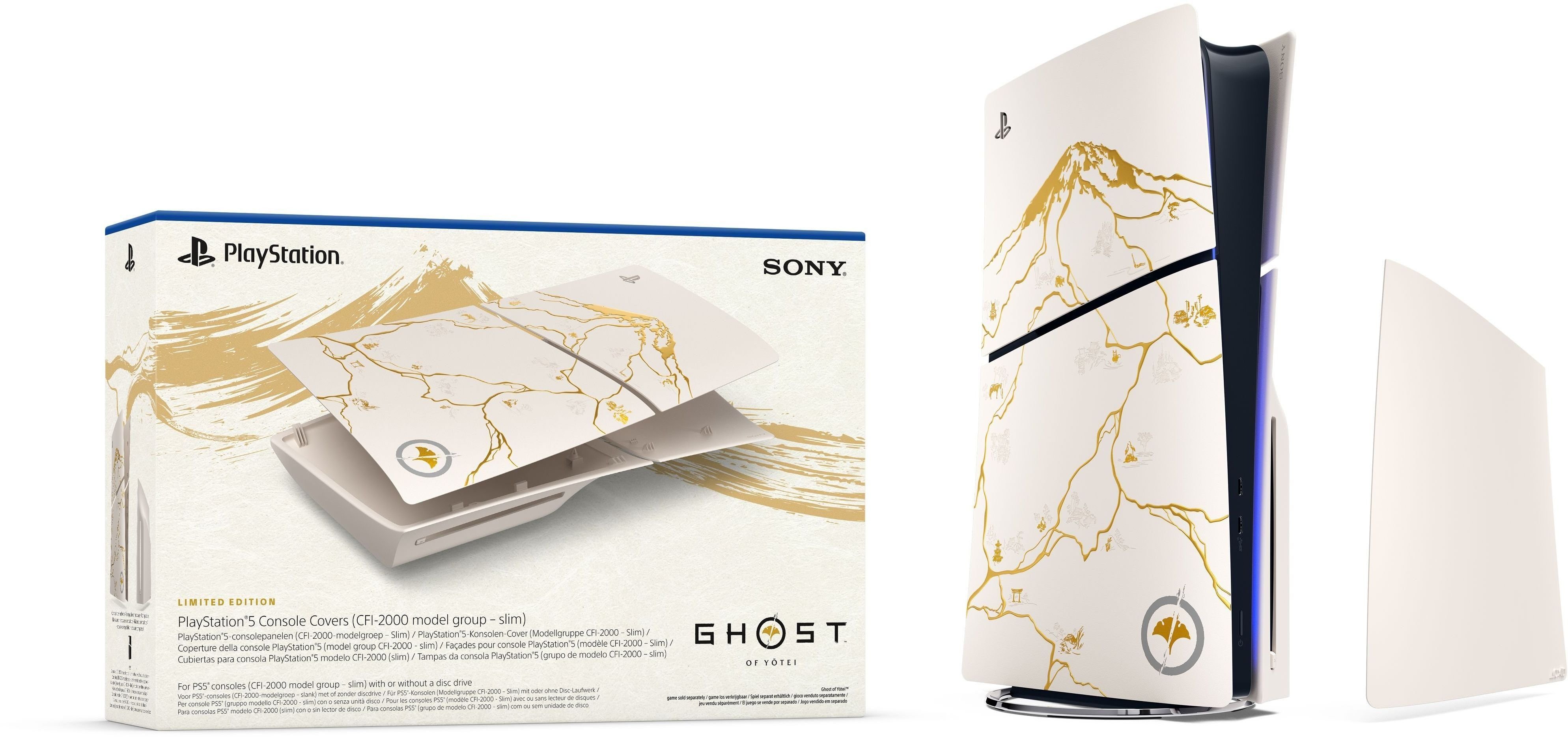 Панелі корпусу консолі PlayStation 5 Slim — Ghost of Yōtei Gold Limited Edition дозволяють надати вашій приставці унікального та вишуканого вигляду. Ці панелі прикрашені зображенням величної гори Йотей, виконаним золотими лініями, що додає японського мистецтва та елегантності вашому ігровому простору.