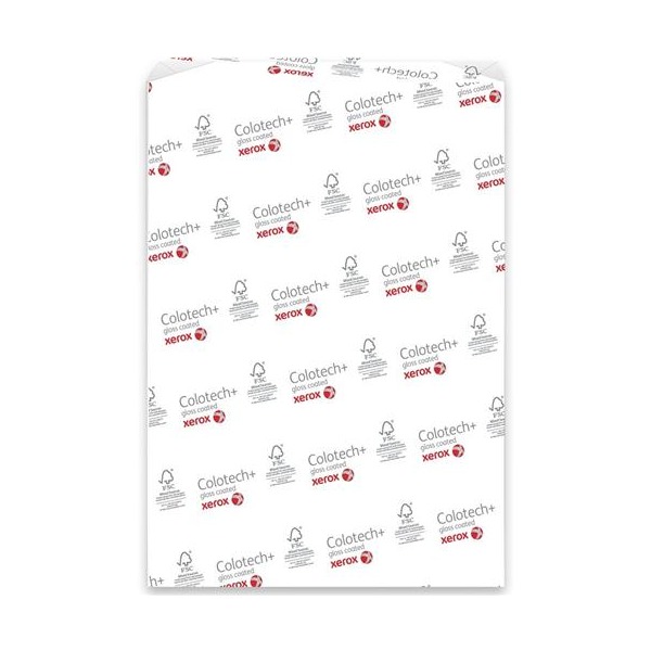 Colotech + Gloss Coated - двосторонній глянсовий папір з гладкою поверхнею, що забезпечує чудову якість відбитків, що створюються на цифрових кольорових копірах. Глянсова поверхня яскраво-білого кольору надає підвищену чіткість і перенесення кольорів зображень. При друці на цифрових кольорових принтерах, папір Colotech + Gloss Coated забезпечує поліпшену працездатність обладнання.