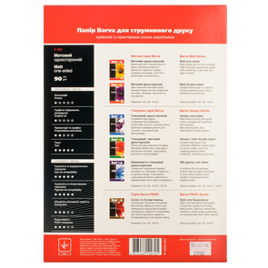 IP-BAR-A090-001 - якісний фотопапір, який підійде для друку на всіх типах струменевих принтерів. В упаковці 100 аркушів паперу формату А4 з матовою поверхнею. Друк можливий лише на одній стороні.