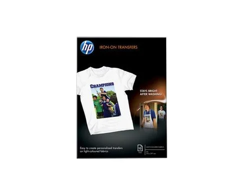 Iron-On Transfers - спеціальні перевідні картинки від компанії HP. Відрізняються чудовою якістю зображень і яскравою, стійкою до вицвітання та палітрою кольорів. Покращена структура, що забезпечує високу якість зображень і фотографій. Зображення та графіка, довше зберігають свою стійкість і колір, навіть після прання. Сумісні з будь-якими бавовняними і поліефірними тканинами. З їх допомогою елементарно створити оригінальні футболки на всі випадки життя, а також у вас з'явиться можливість прикрасити кепки, шорти, куртки, бандани, сумки і навіть постільну білизну. Ідеальне застосування на дні народження, сімейні свята і корпоративні та спортивні заходи.