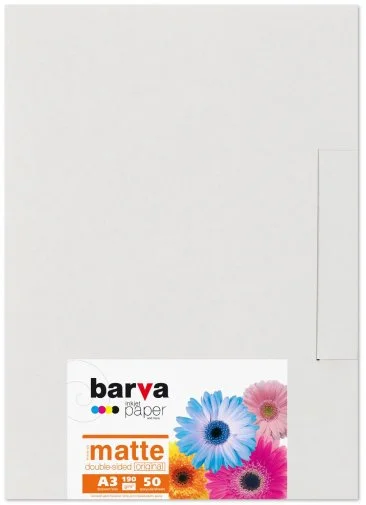 Двосторонній фотопапір від компанії BARVA. Має матове покриття, призначений для струменевого друку. Відрізняється хорошою передачею кольору та відтінків, тому зображення будуть насиченими та яскравими.