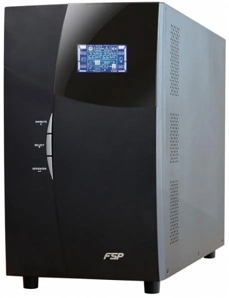 ПБЖ виготовлений компанією FSP. Він належить до пристроїв онлайн типу. Забезпечує вихідну напругу у вигляді синусоїди. Призначений для підтримки обладнання у випадках непередбачуваних збоїв у постачанні енергії. Має дисплей, який дозволить відстежувати стан пристрою. Має 8 активних виходів.
