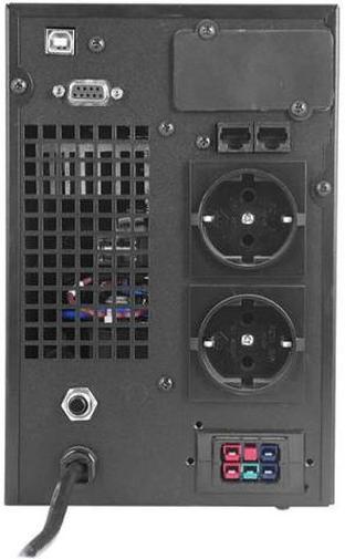 Оснащений портами USB, RS-232, EPO і слотом для SNMP-карти. Підтримується встановлення додаткових батарей.