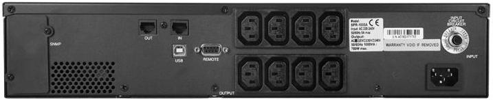 Оснащений стабілізатором напруги (AVR) і слотом для SNMP-карти. Може монтуватися у стійку.