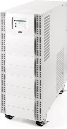 Powercom VGD-10K11- промисловий пристрій безперебійного живлення On-Line типу з подвійним перетворенням енергії. Завдяки високопродуктивному процесору ПБЖ забезпечує подачу на навантаження синусоїдальної напруги сформованого з високою точністю. Володіє повною потужністю 10000 ВА та невеликими для даного типу пристроїв габаритами. Оснащений РК-екраном та спеціальними ніжками, які спрощують встановлення.
