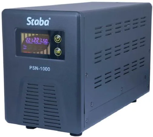Staba PSN-1000 - пристрій безперебійного живлення з вихідною напругою у вигляді синусоїди. Пристрій призначений для захисту такої техніки як одно- двоконтурні котли, робочі станції, сервери та інші, від імпульсів високої напруги, електромагнітних перешкод, пониження, підвищення та зникнення напруги в електромережі. Потужний зарядний пристрій підтримує роботу з батареями ємністю від 24 до 200 Аг.