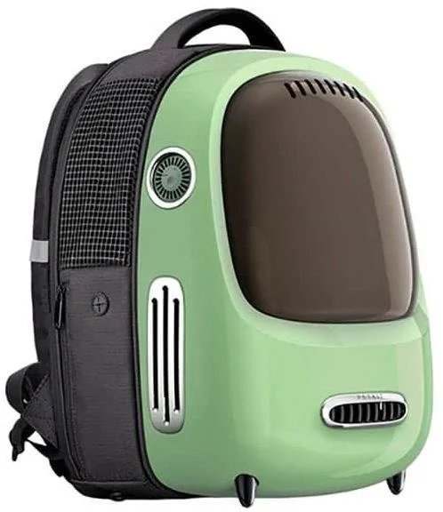 Переноска обладнана вдосконаленою вентиляційною системою з отворами з кожного боку, що забезпечують постійний доступ свіжого повітря. Вбудований вентилятор допомагає покращити циркуляцію повітря, коли це необхідно, а ручка на бічній панелі дозволяє регулювати потужність потоку повітря для досягнення оптимальної температури та комфорту для вашого кота.
