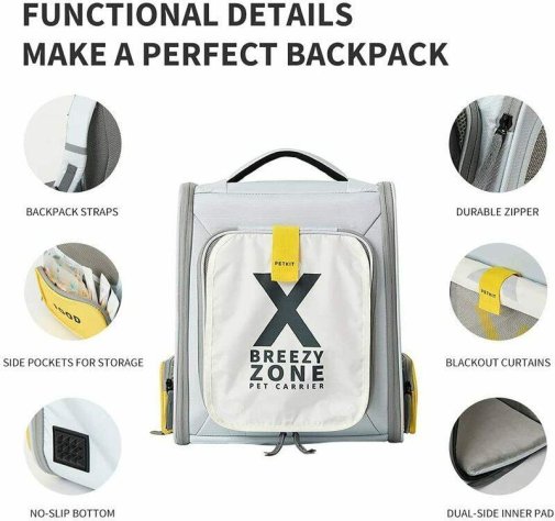 PETKIT Breezy xZone доступний у кількох кольорах, зокрема Grey і Yellow, що дає змогу підібрати варіант відповідно до особистого стилю. Його сучасний вигляд гармонійно поєднується з міським одягом, а компактні розміри відповідають вимогам більшості транспортних компаній щодо перевезення тварин.