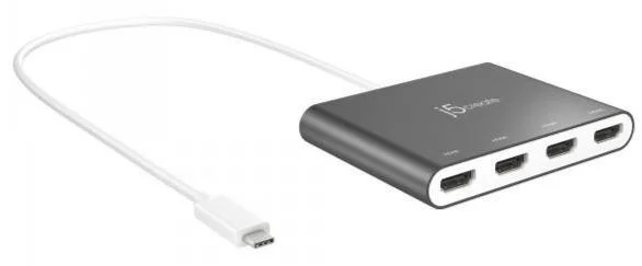 Перехідник j5create USB-C на 4×HDMI (JCA366-N) — це потужне та доступне рішення, яке перетворює ваш ноутбук на справжню робочу станцію з п’ятьма екранами. Під'єднавши лише один кабель USB-C, ви отримуєте можливість вивести зображення одразу на чотири незалежні монітори з роздільною здатністю Full HD 1080p (1920×1080) при 60 Гц і повноцінним стереозвуком через HDMI. Це ідеальна заміна дорогим відеокартам для тих, кому потрібно багато робочого простору без великих витрат.