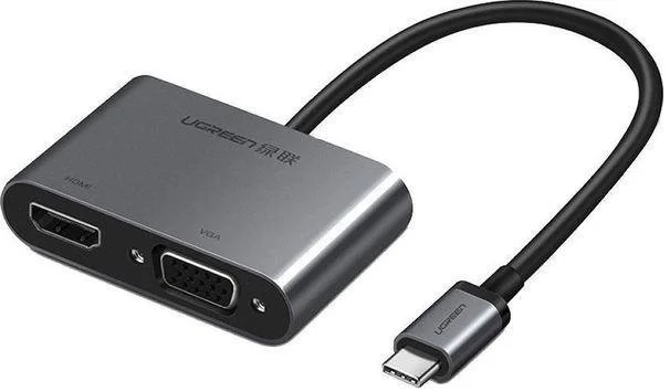 Перехідник виробництва Ugreen, який з'єднає Type-C пристрій з VGA чи HDMI монітором. Відрізняється компактними габаритами та легкою конструкцією. Виготовлений із надійних матеріалів, тому буде забезпечить довгу працездатність протягом тривалого часу.