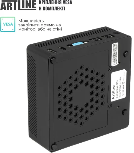 Неттоп ARTLINE Business B14 (B14v30Win) — практичне офісне рішення на базі енергоефективного Intel N150 (4 ядра, до 3,6 ГГц) з 16 ГБ DDR4-3200 і SSD 480 ГБ. Пристрій оснащений набором необхідних портів (HDMI, DisplayPort, D-Sub, 4xUSB 3.0, microSD, 2xLAN), модулем Wi-Fi 802.11ac і Bluetooth 4.0, підтримує VESA-кріплення і працює під управлінням Windows 11 Pro, забезпечуючи стабільну роботу в офісних завданнях.