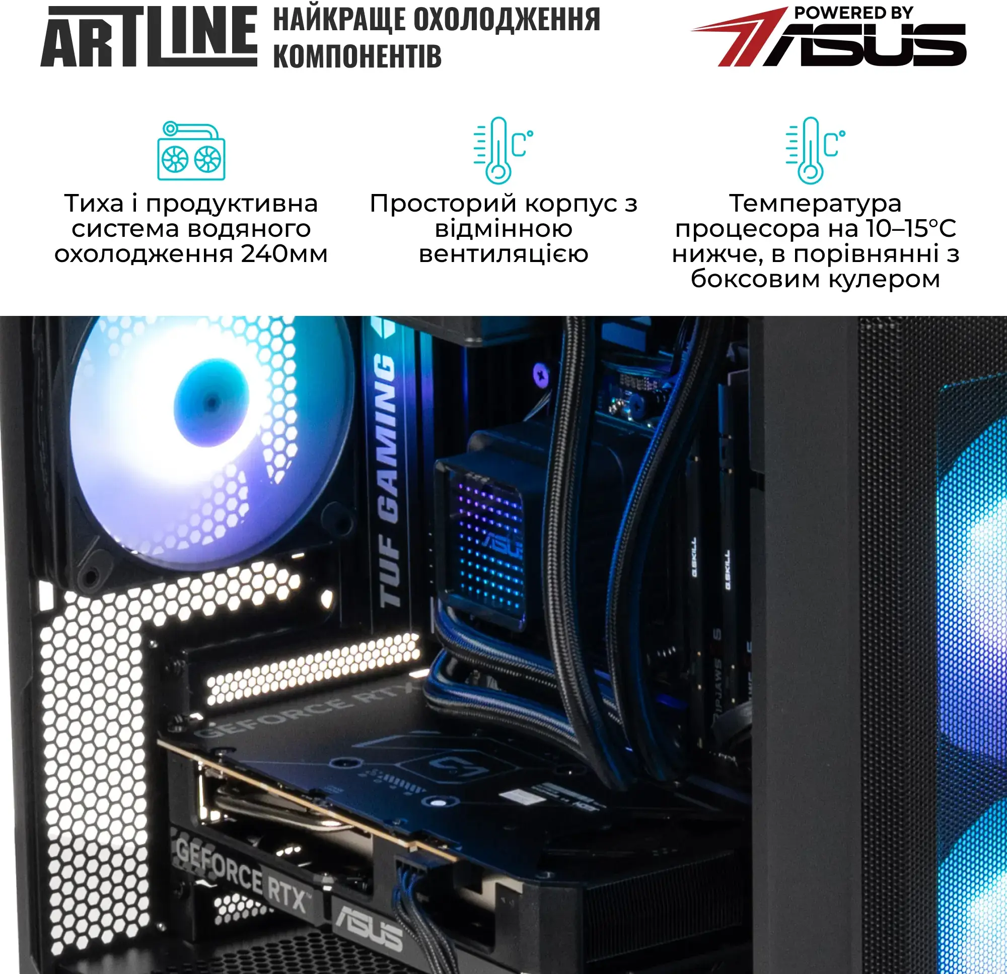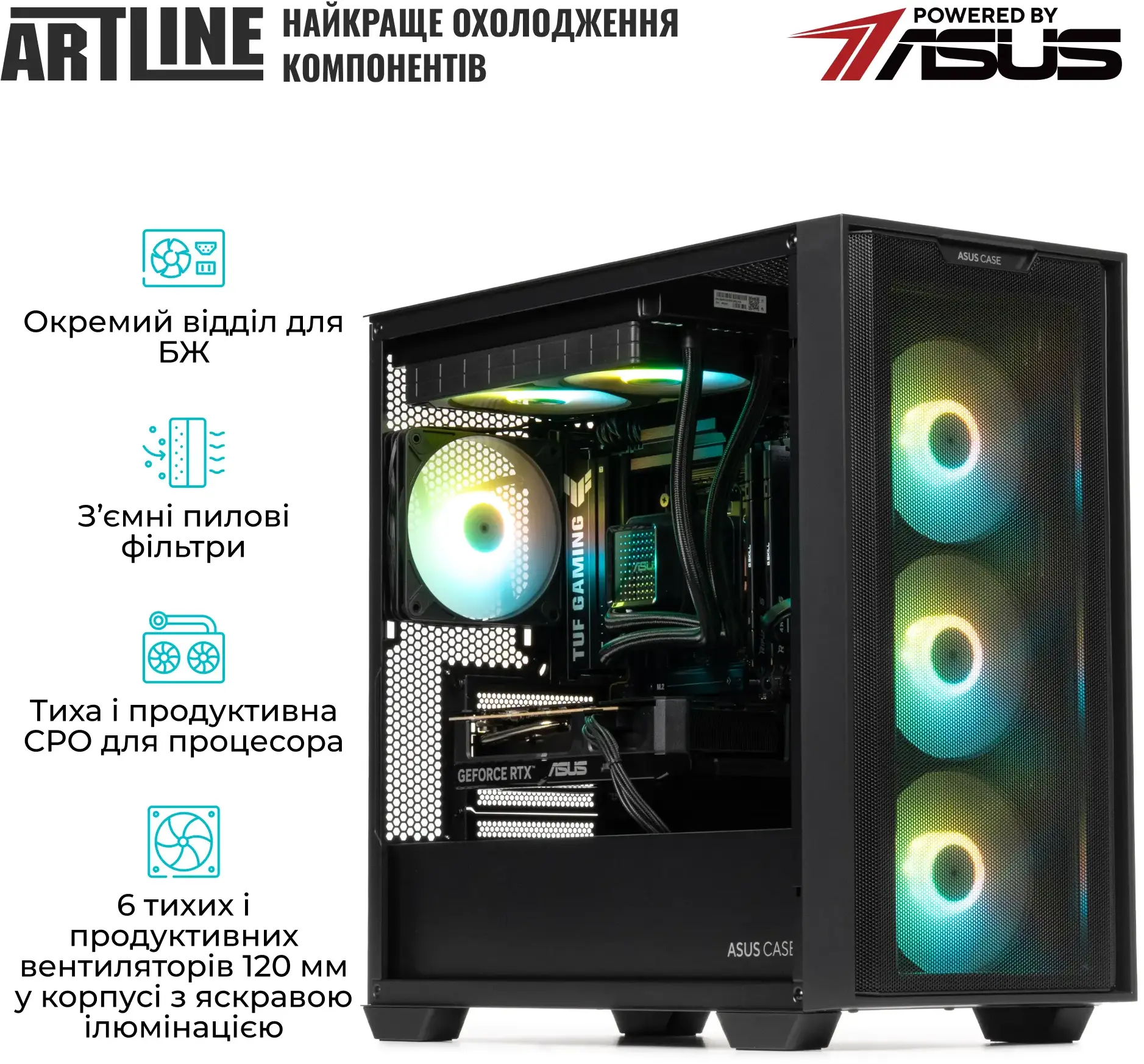 Комп'ютер ARTLINE Gaming A21 Windows 11 Home (A21v29Win) – ігровий комп'ютер з водяним охолодженням і комплектуючими від ASUS. Оснащений 8-ядерним AMD Ryzen 7 7700 3.8-5.3GHz, 16GB оперативної пам'яті DDR5-5600, SSD ємністю 2000 ГБ, материнською платою ASUS TUF GAMING B850-PLUS WIFI, відеокартою NVIDIA GeForce RTX 5060 Ti 16GB, блоком живлення 700W 80+ Bronze і набором RGB-вентиляторів. Розміщений в сучасному корпусі ASUS A21 PLUS TG ARGB Black. Є весь необхідний набір портів, Wi-Fi 802.11be, Bluetooth 5.4. Поставляється з Windows 11 Home.