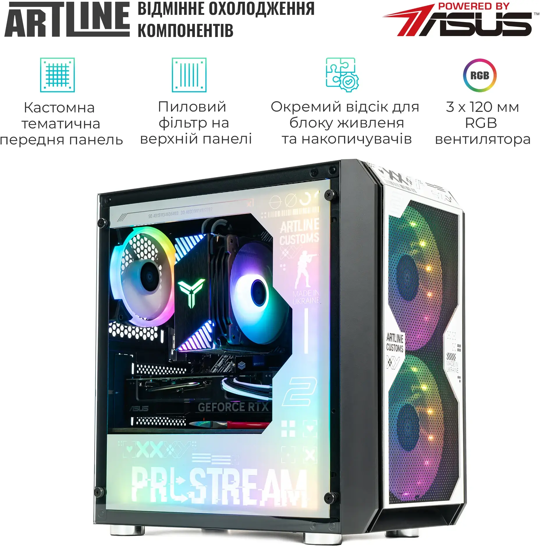 Ігровий системний блок ARTLINE Gaming GBS (GBSv49CS) створений на базі 8-ядерного процесора AMD Ryzen™ 7 9700X 3.8–5.5 ГГц та відеокарти NVIDIA GeForce RTX 5060 Ti 8GB, оснащений 32 ГБ DDR5-6000 Gaming і надшвидким SSD 1 ТБ M.2 NVMe, материнською платою B850M DS3H (чипсет AMD B850) та блоком живлення 650W 80+ Bronze. Корпус QUBE NEPTUNE Custom із загартованим склом 4 мм, RGB-вентиляторами 2×160 мм спереду та 1×120 мм ззаду, пиловим фільтром і керованим LED-підсвічуванням, підтримка мережі 2.5Gb LAN, передні порти 1×USB 3.0, 2×USB 2.0, Audio та широкий набір задніх інтерфейсів (USB 3.2 Type-C/Type-A, DisplayPort, HDMI, Ethernet, аудіо) роблять систему готовою до сучасних ігор і кастомних збірок; у комплекті ПК, техпаспорт і кабель живлення, без попередньо встановленої ОС.
