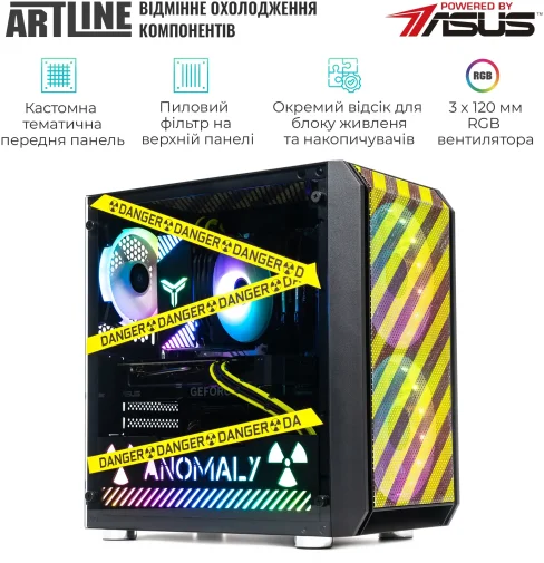 Комп'ютер ARTLINE Gaming GBS (GBSv53AN) — потужний ігровий та кастомний системний блок у корпусі QUBE NEPTUNE Custom кольору ANomaly з ексклюзивним принтом і загартованим склом 4 мм. В основі — 8-ядерний процесор AMD Ryzen 7 7800X3D 4.2–5.0 ГГц з розблокованим множником і високоефективним повітряним кулером QB-OL2000GT, 32 ГБ DDR5-6000 Gaming та відеокарта GeForce RTX 5060 Ti 16 ГБ. Надшвидкий 1 ТБ M.2 NVMe SSD, материнська плата B850M DS3H з чипсетом AMD B850, мережева карта 2.5Gb, блок живлення 650 Вт 80+ Bronze. Корпус оснащений 2x160 мм і 1x120 мм RGB-вентиляторами, верхнім пиловим фільтром і керуванням LED-підсвіткою. Зручні інтерфейси: спереду 1xUSB 3.0, 2xUSB 2.0 та аудіо, ззаду — до 8 USB, USB Type-C, HDMI, DisplayPort, Ethernet 2.5Gb, аудіоджеки, а також HDMI 2.1b і 3x DisplayPort 2.1b на відеокарті. Поставка без ОС, у комплекті — ПК, техпаспорт та кабель живлення.