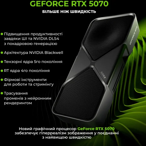 Комп’ютер ARTLINE Gaming PBG Windows 11 Home (PBGv08Win) – потужна ігрова система на базі 8-ядерного процесора AMD Ryzen 7 7800X3D та відеокарти GeForce RTX 5070 12GB. Модель оснащена 32 ГБ оперативної пам’яті DDR5-6000, швидким накопичувачем 1 ТБ NVMe SSD, материнською платою B650M GAMING WIFI6E, блоком живлення GIGABYTE 750W 80+ Bronze та попередньо встановленою операційною системою Windows 11 Home. Корпус QUBE MIRAGE Black з ARGB-підсвічуванням підкреслює сучасний ігровий стиль і робить комп’ютер чудовим вибором для актуальних ігор, мультимедійних завдань і щоденного використання.