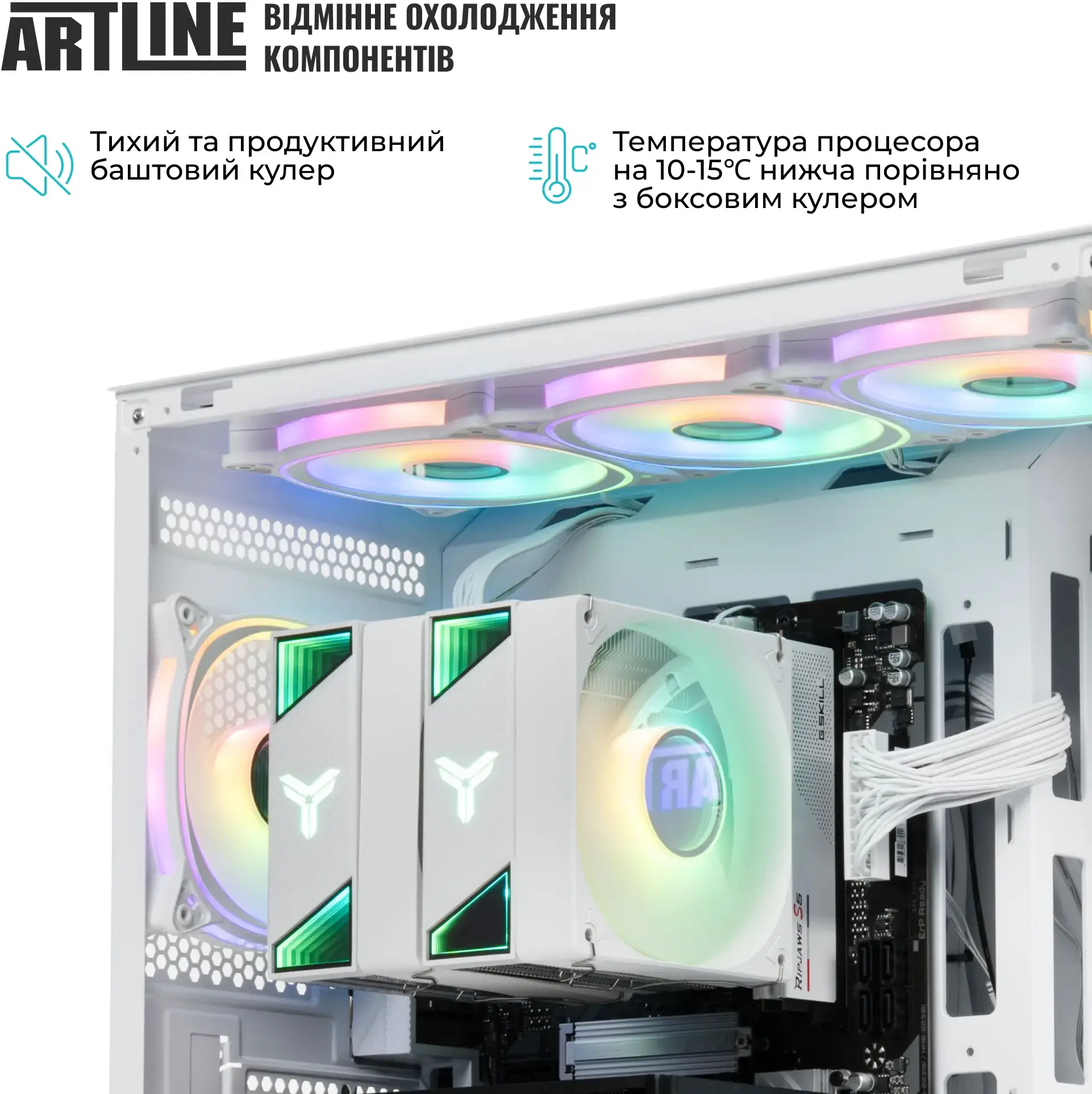 Комп’ютер ARTLINE Gaming PBGWHITE (PBGWHITEv07) – потужна ігрова система на базі 8-ядерного процесора AMD Ryzen 7 7700 та відеокарти GeForce RTX 5070 12GB White. Модель оснащена 32 ГБ оперативної пам’яті DDR5-6000, швидким накопичувачем 1 ТБ NVMe SSD, материнською платою B650M GAMING WIFI6E та блоком живлення GIGABYTE 750W 80+ Bronze. Корпус QUBE MIRAGE White підкреслює стильний світлий дизайн системи та робить її чудовим вибором для актуальних ігор, мультимедійних завдань і щоденного використання.