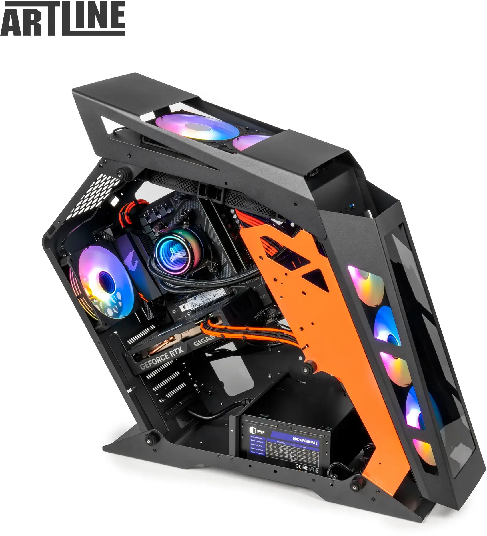 ARTLINE Gaming STLKR (STLKRv116) – потужний ігровий системний блок у корпусі QUBE STALKER MAX Black-Orange для сучасних проєктів і вимогливих задач. Оснащений 6-ядерним AMD Ryzen 5 7600X (4.7–5.3 ГГц) з розблокованим множником і водяним охолодженням 240mm WaterCooler Black, 16 ГБ DDR5-5600 та надшвидким SSD 1 ТБ M.2 NVMe. Відеокарта NVIDIA GeForce RTX 5060 Ti 16GB забезпечує високий FPS і стабільну графіку. Платформа на чипсеті AMD B650 (PRIME B650M-A), блок живлення 650W 80+ Bronze, розвинене охолодження: 3×120 мм RGB спереду, 1×120 мм RGB ззаду та 2×120 мм RGB зверху (для СВО), бокові панелі із загартованого скла 4 мм і яскрава RGB-підсвітка. Порти корпусу: 1×USB 3.0, 2×USB 2.0, Audio; інтерфейси материнської плати включають DisplayPort, HDMI, D-Sub, 2.5Gb Ethernet, USB 3.2 Gen2/Gen1 та аудіороз’єми; на відеокарті – 1×HDMI 2.1b і 3×DisplayPort 2.1b. Операційна система відсутня. Комплектація: ПК, техпаспорт, кабель живлення. Розміри (без упаковки): 555×245×685 мм, вага 12 кг; в упаковці: 655×260×785 мм, вага 14 кг, 1 місце.