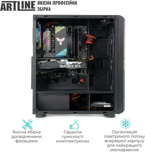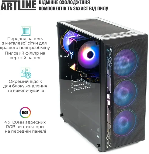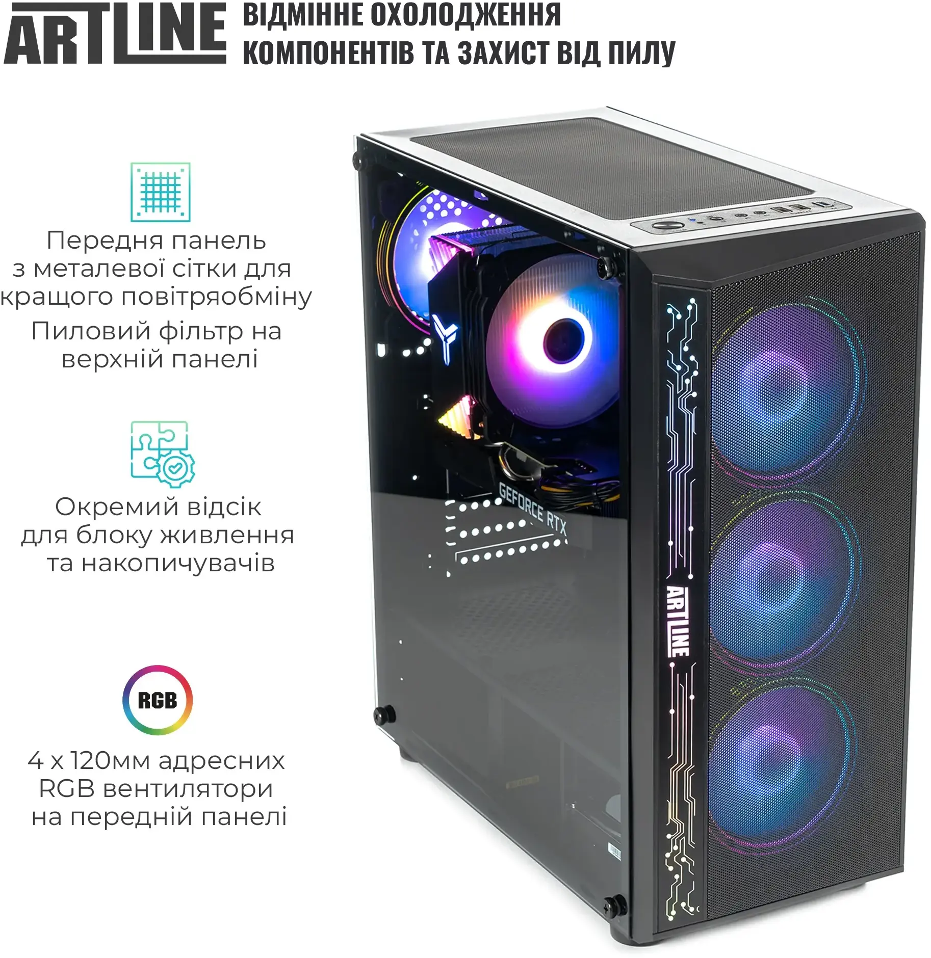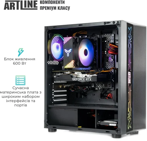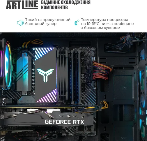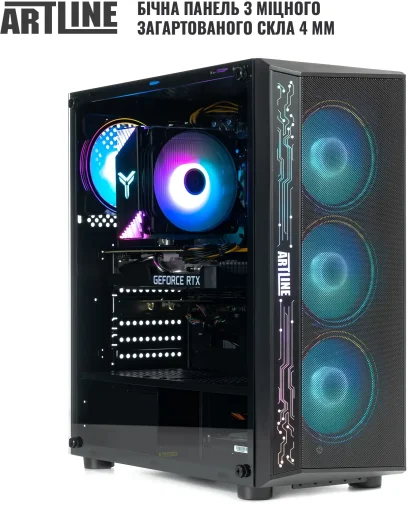 ARTLINE Gaming X49 (X49v78) — потужний ігровий ПК із Ryzen 7 7800X3D, 64 ГБ DDR5 та відеокартою GeForce RTX 5060 Ti 16 ГБ, що забезпечує високий FPS і чудову продуктивність у 1440p та 4K. NVMe SSD 1 ТБ гарантує швидкий запуск ігор і застосунків, а корпус QUBE BREEZE з ARGB-підсвічуванням створює стильну ігрову атмосферу.