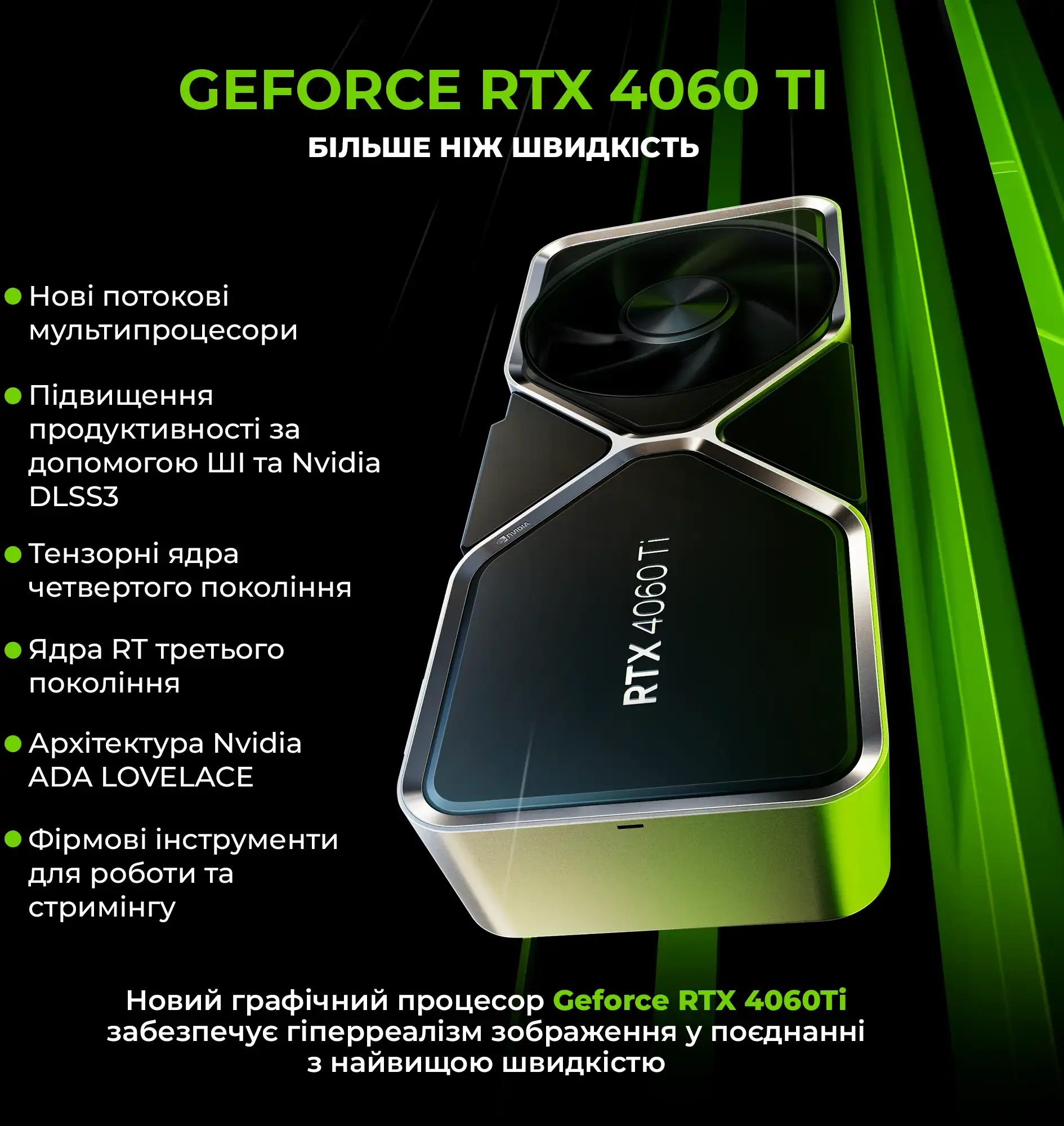 Ігровий системний блок із процесором AMD Ryzen 5 5600X і відеокартою NVIDIA GeForce RTX 4060 Ti 8 ГБ забезпечує високу продуктивність для сучасних ігор. Оснащений 32 ГБ оперативної пам'яті DDR4-3200 і швидкісним SSD на 1 ТБ M. 2 NVMe. Встановлено в стильний корпус QUBE EAGLE з RGB-підсвічуванням і ефективним охолодженням: три RGB-вентилятори (140 мм зверху, 120 мм позаду і знизу). Блок живлення 650W 80+ Bronze гарантує стабільну роботу системи.