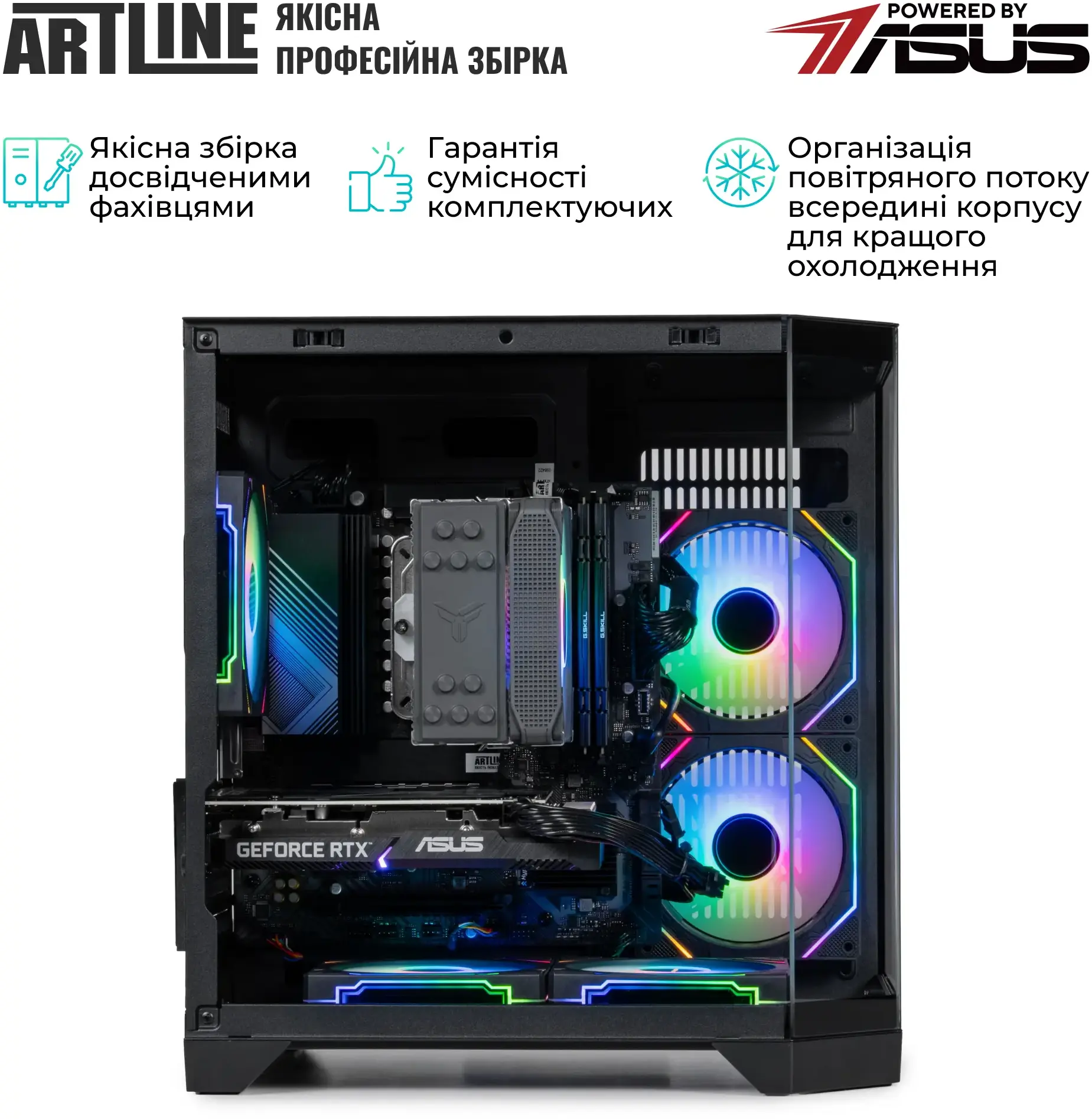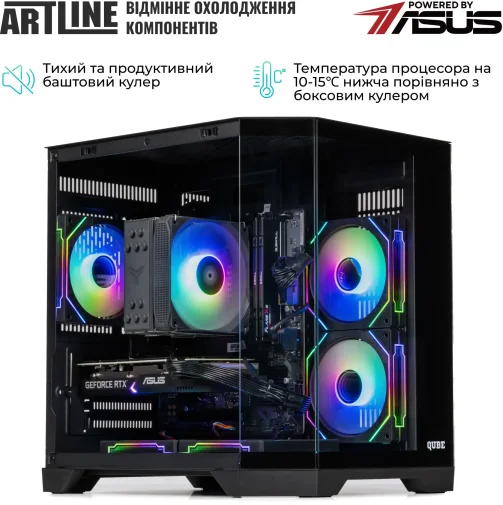 ARTLINE Gaming X61 Windows 11 Home (X61v31Win) – готовий до роботи ігровий системний блок на базі 6-ядерного AMD Ryzen 5 7500F та відеокарти GeForce RTX 5050 8GB для високої продуктивності в іграх та додатках. 16GB DDR5-5600 та швидкий SSD 1TB M.2 NVMe забезпечують миттєве завантаження системи та комфортну багатозадачність. Попередньо встановлена Windows 11 Home дозволяє почати користуватися ПК відразу після підключення. Ефективне Tower ARGB-охолодження та п'ять RGB-вентиляторів підтримують стабільну температуру, а корпус QUBE CRYSTAL Black із загартованим склом підкреслює стиль складання.