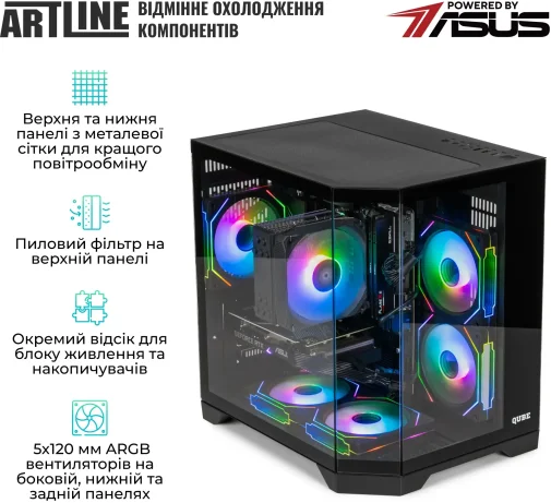 ARTLINE Gaming X61 Windows 11 Home (X61v32Win) – готовий ігровий системний блок з 6-ядерним AMD Ryzen 5 8400F та відеокартою GeForce RTX 5050 8GB для впевненої продуктивності у сучасних іграх. 16GB DDR5-5600 та швидкий SSD 1TB M.2 NVMe забезпечують швидке завантаження системи та плавну роботу в багатозадачності. Попередньо встановлена Windows 11 Home дозволяє почати користуватися ПК відразу після підключення. Баштове ARGB-охолодження та п'ять RGB-вентиляторів підтримують стабільні температури, а корпус QUBE CRYSTAL Black із загартованим склом підкреслює стиль складання.