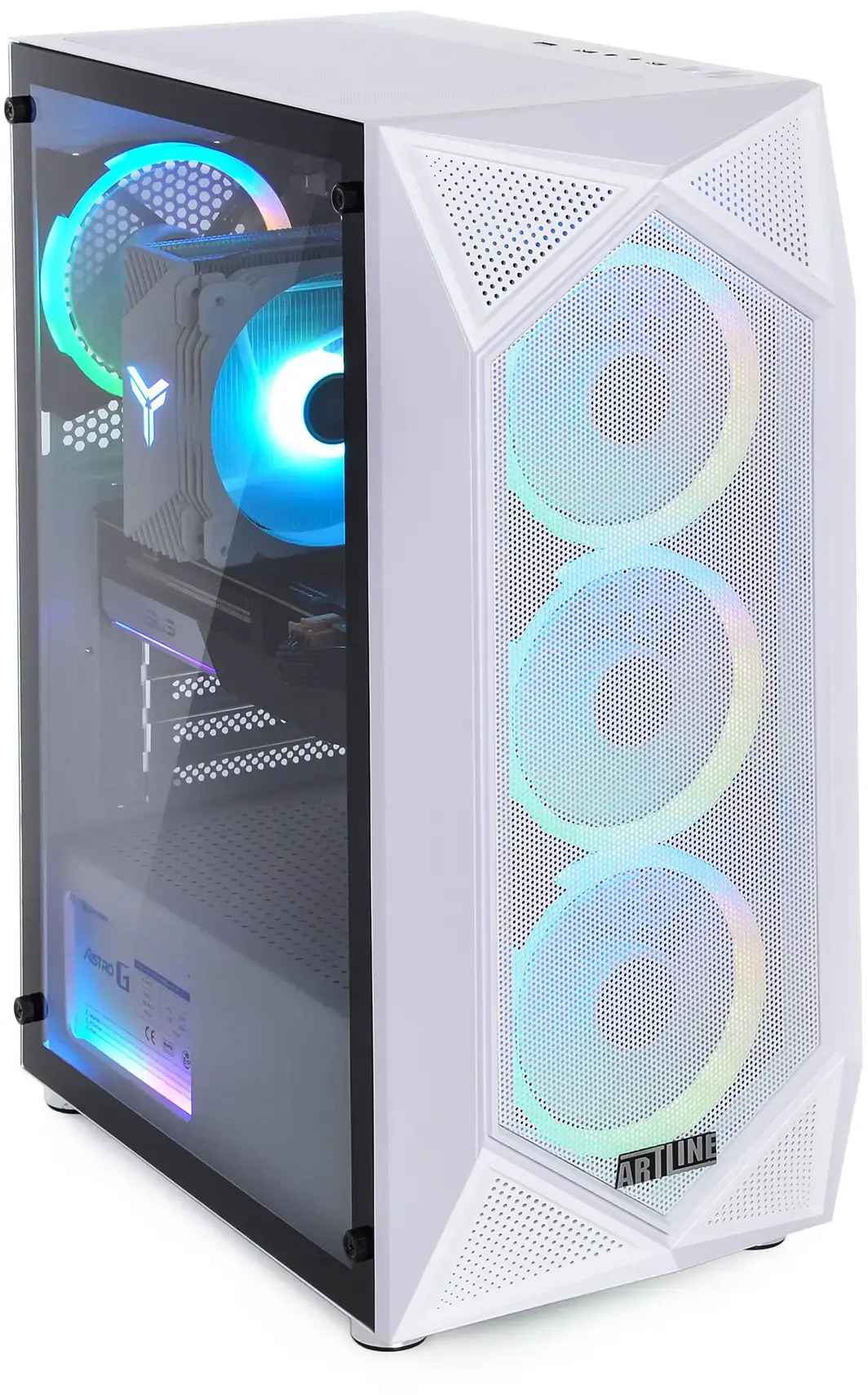 Ігровий комп'ютер ARTLINE Gaming X66WHITE у сучасному корпусі QUBE SNOW з бічною скляною панеллю поєднує високу продуктивність і привабливий дизайн. Серед його комплектуючих варто відзначити процесор AMD 8-core Ryzen 7 7700 3.8-5.3GHz, відеокарту AMD Radeon RX 9070 16GB, оперативну пам'ять стандарту DDR5-6000 і накопичувач об'ємом 2000 ГБ. Охолоджується корпус чотирма ARGB LED вентиляторами. Поставляється без ОС.